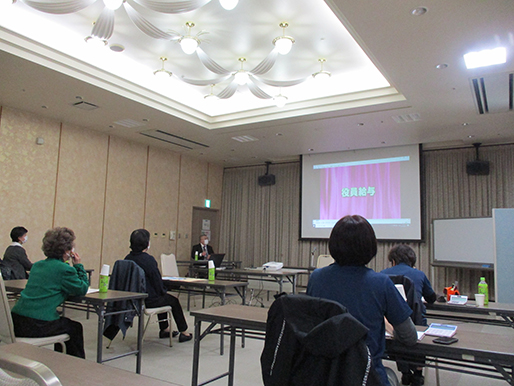 4月20日 マリンゲート塩釜3階の広い会場で、法人を対象とした決算説明会を開催いたしました。講師は、塩釜税務署法人課税第一部門の小野上席調査官にお願いし、誤りやすいポイントや注意を要する事項について、丁寧に分かりやすく次の3点を中心に解説いただきました。